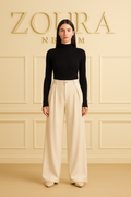 Confeccionado en un tejido suave y flexible de alta calidad, AERYLIA se adapta al cuerpo con una caída fluida y favorecedora. Su textura ligeramente satinada captura la luz con delicadeza, otorgando un brillo discreto y refinado que lo convierte en una elección ideal para eventos, cenas o celebraciones especiales.